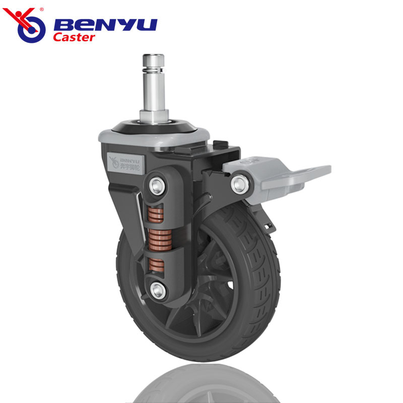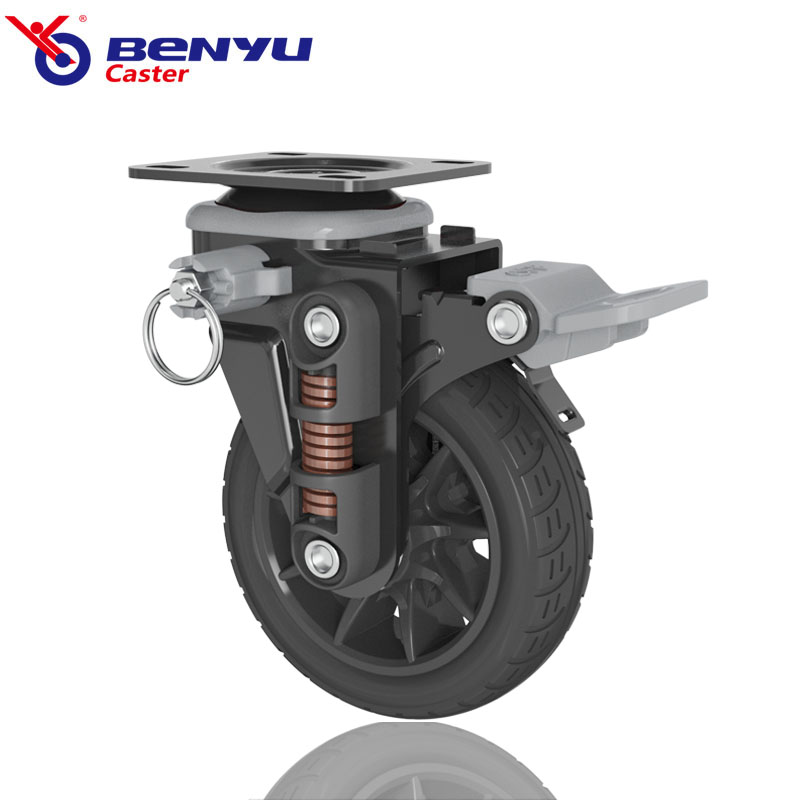 Medium Duty PU Shock Absorber Spring Caster Wheel Features: Medium Duty PU Shock Absorber Spring Caster Wheel is a high-quality, durable solution designed for medium load applications. These casters are engineered to provide superior shock absorption and smooth movement, making them ideal for use in industrial, commercial, and institutional environments. The combination of a polyurethane wheel and a spring-loaded mechanism ensures that these casters can handle rough surfaces and uneven floors with ease. Whether you're moving equipment, furniture, or materials, this caster offers the stability and reliability needed for daily operations. The Medium Heavy Duty PU Caster is built to last, featuring a robust steel frame that resists corrosion and wear. The polyurethane wheel provides excellent traction and minimizes floor damage, while the internal spring system absorbs vibrations and reduces noise. This design not only enhances user comfort but also extends the lifespan of the eq…