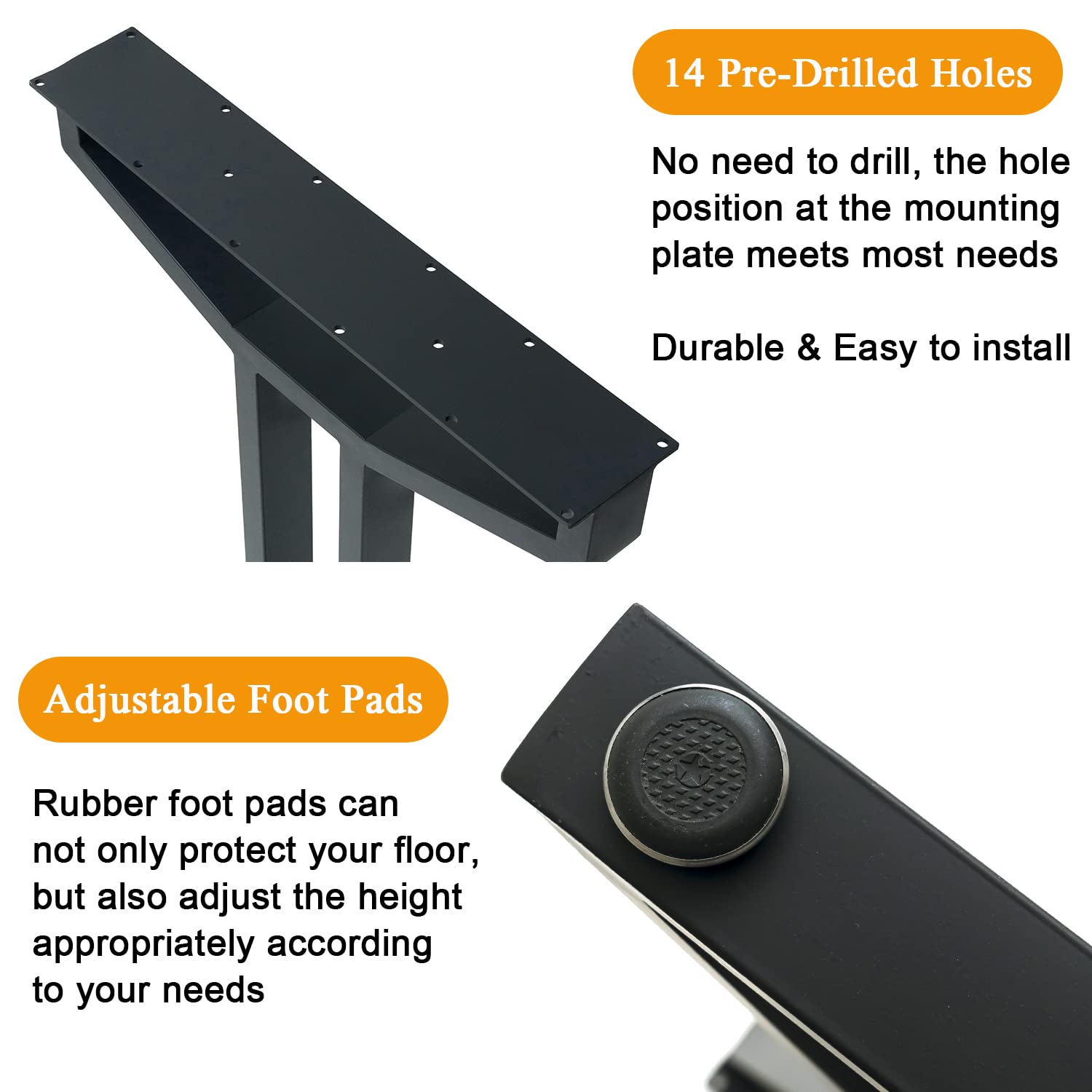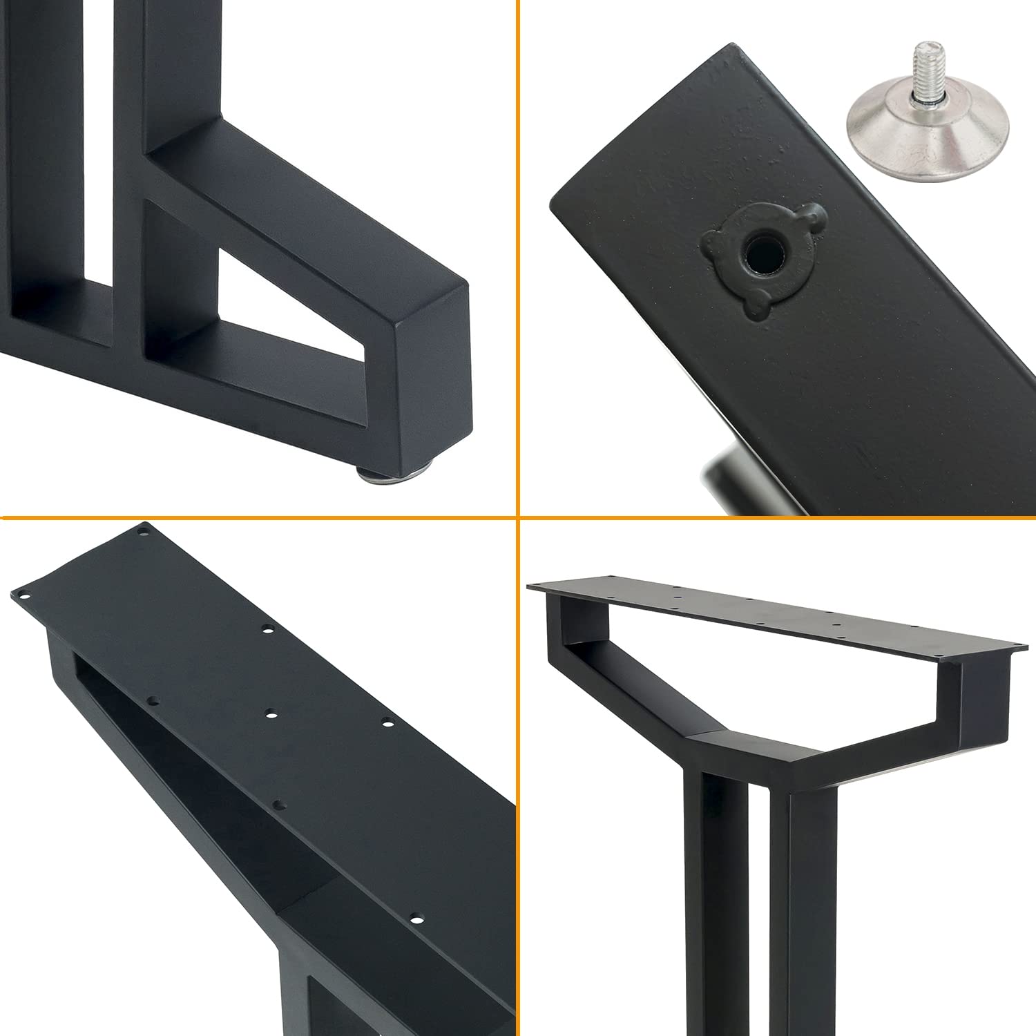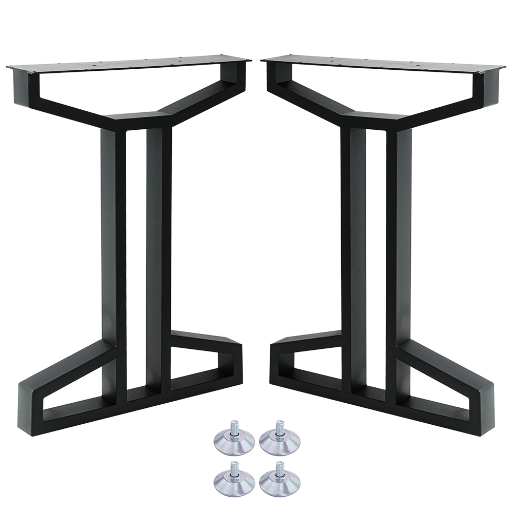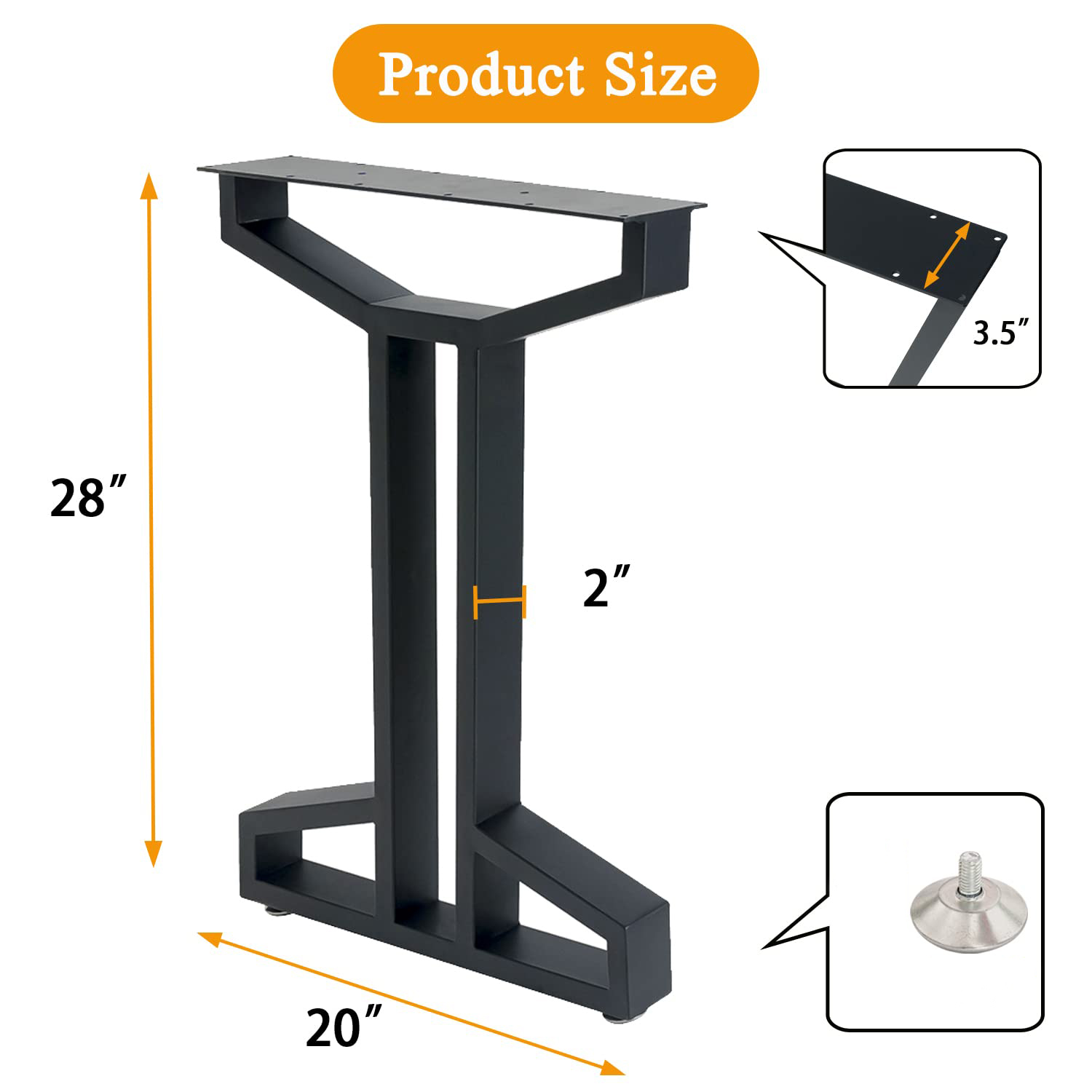 Sturdy Table Legs Details: Height 28 inch, width 24 inch; come with two pcs metal table legs, four pcs stabilizers and eight screws; quick installation and easy operation Premium Material: Dining table legs is made of premium steel with a thickness of 1.5 mm which is durable and has excellent heat resistance Strong Bearing Capacity: Strong load-bearing capacity; the maximum load weight of leg is about 800 lbs Adjustable Feet: You will also get a set of foot pad which is used as an added stabilizer for that wobbly chair or table; ideal for uneven floors, especially outdoors, to make sure that your table legs are always sturdy Widely Use: The mental table legs are perfect for custom coffee tables, side tables, console tables, TV stands, end tables, cocktail tables and more; it looks great with all types of wood and can be painted to match any color scheme