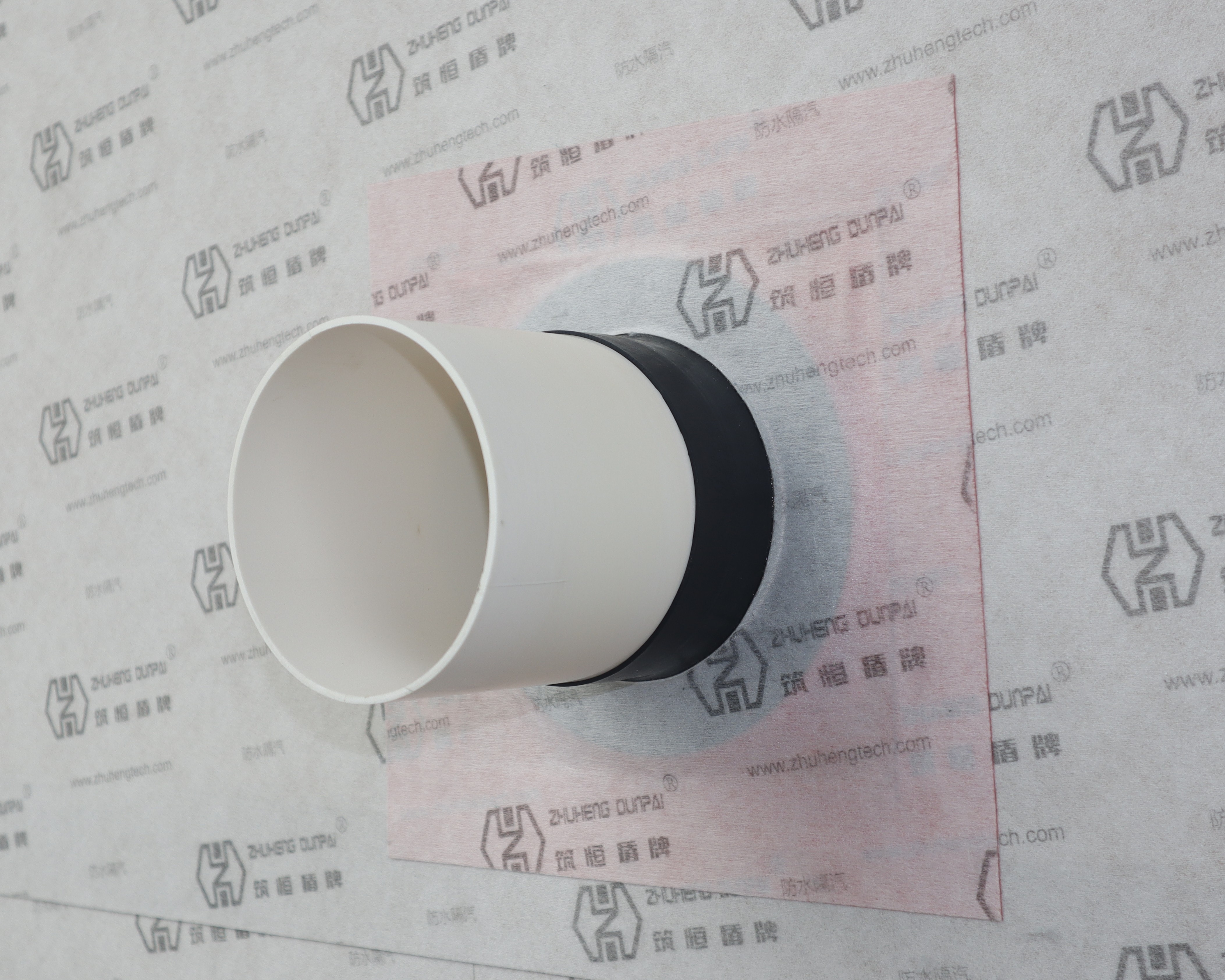 GD-in series are processed from waterproof and vapor barrier membrane tape and specialty rubber composite. This series of products has excellent flexibility, high and low temperature resistance, corrosion resistance and waterproof sealing, construction convenience, can save the construction period. Product Applications GD-in Series is used for airtightness treatment on the inside of pipes through exteriorwalls or pipes through floor slabs, blocking moisture infiltration and preventing energyloss. Product Advantages • Ensures excellent airtightness and long-term watertightness at pipe joints to preventenergy loss. • The pressure-sensitive adhesive is aging-resistant which has excellent tack and staticshear adhesion. • The surface layer is a high-strength fiber nonwoven fabric with high mechanicalstrength, good plasterability and close bonding with the mortar. • The adhesive layer and the rubber casing have a high bonding fastness and are noteasy to peel off by themselves. • Rub…
