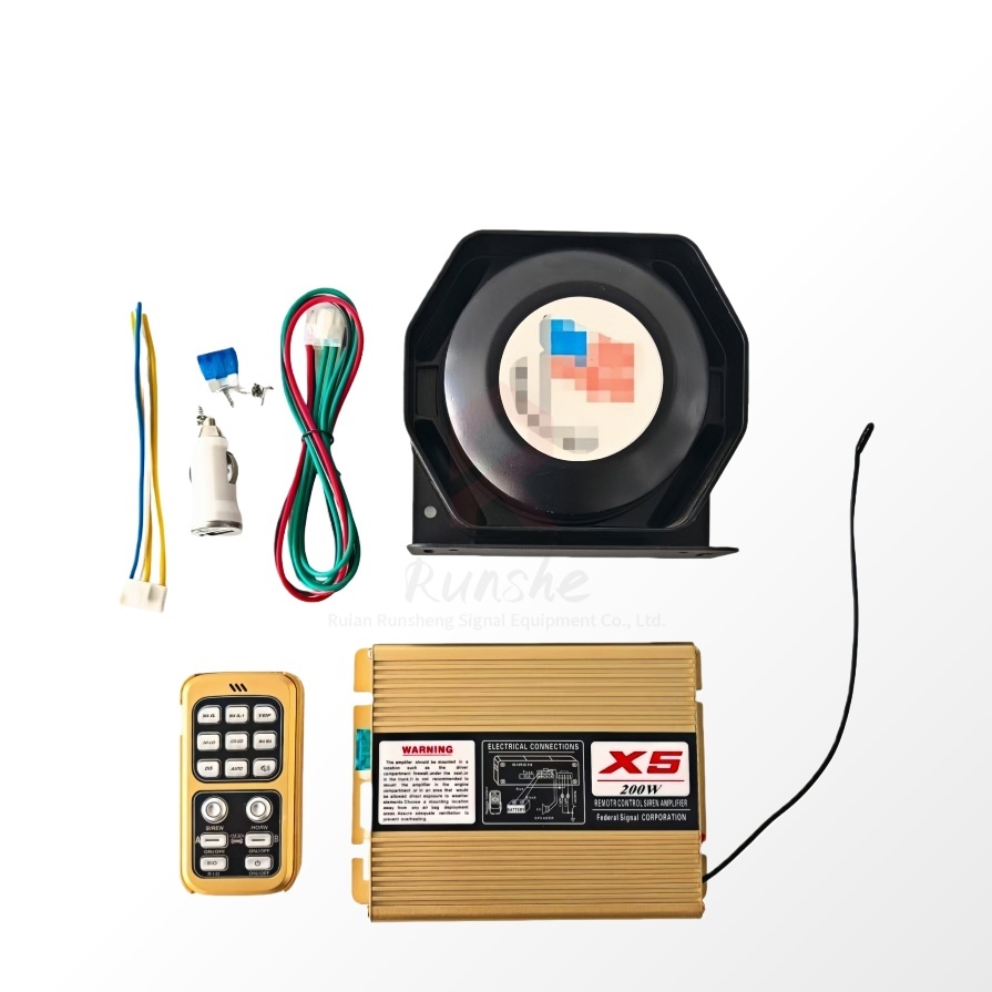 X5(200W) is a high-performance professional device integrated with a vehicle alarm system, combining a 200W power amplifier, octal speaker and federal remote control function, perfectly compatible with 12V vehicle power supply. The system has 18 built-in high-decibel car warning sounds, covering scenario-specific tones such as exclusive police sounds, fire alarm sounds and emergency rescue sounds. Scene modes can be flexibly switched via the federal remote control, enabling convenient and efficient operation. As a professional PA system, it features loud sound pressure and strong penetration, which can quickly cut through noise to transmit warning signals accurately in complex environments such as urban congestion and fire scenes, meeting diverse emergency needs. Adopting a stable circuit design, the octal speaker produces clear and undistorted sound, and the federal remote control supports long-distance operation, greatly improving usability. The compact body is suitable for various v…